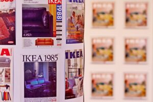 De covers van alle IKEA-gidsen door de jaren heen zijn te zien in het IKEA Museum
