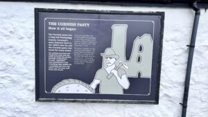Die pasteitjes hebben een heel eigen verhaal. Zelfs de vorm heeft een functie. Hoe dat zit? Vroeger werkten veel mensen in Cornwall in tinmijnen. De arbeiders namen als lunch huisgemaakte pasteitjes mee. Die Cornish Pastys hebben de vorm van een dikke dubbelgeslagen pannenkoek met een dikke rand. Ze worden gevuld met groenten en vlees en/of kaas. De dikke korst zorgde ervoor dat de inhoud warm bleef. De rand vormde een soort handvat en werd niet opgegeten omdat de arbeiders vaak giftige stoffen aan hun handen hadden. De korst werd ‘geofferd’ in de mijn om de geesten gunstig te stemmen.