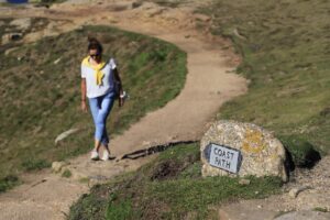 Wij eten de (vega) Cornish Pasty helemaal op en hebben genoeg energie opgedaan voor de terugtocht. We klauteren via een achterafpad door het dorp weer omhoog. We lopen praktisch door de achtertuin van Mary, die daar met haar kop thee van het uitzicht staat te genieten. “Isn’t it beautiful”, verzucht ze. Wij kunnen dat alleen maar beamen. Haar huis kijkt uit over de baai die on-Engels aandoet. De goed geconserveerde Engelse is hier geboren en getogen, woont in haar ouderlijk huis dat op de mooiste plek van Sennen staat, maar toch is ze melancholisch. “Al mijn buren zijn weg, alle mensen die ik ooit kende: weg. De huizen hier zijn vakantiewoningen geworden. Echte buren heb ik niet meer, ik ben een van de laatste echte locals hier.”