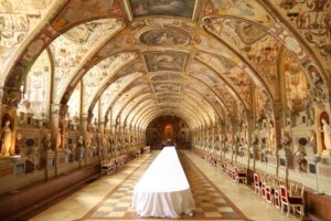 Als je dan toch in Munchen bent en je hebt nog een paar uur over, bezoek dan de ‘Residentie‘. Je weet niet wat je ziet in dit voormalige koninklijke paleis waar Beierse adel en vorsten – en dan met name de familie Wittelsbach – eeuwenlang resideerden. Bereid je voor op een historische reis door dit gigantische kasteel in hartje stad: er zijn meer dan 130 (!) kamers vol kunst, antiek, keramiek, glaswerk, pracht, praal, schatten en zo voort.  Vergeet ook niet de ‘gouden’  leeuwen die voor het pand staan een aaitje over de snoet te geven. Dat brengt geluk.