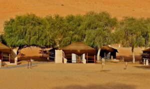 Niet alleen de woestijn doet je nietig voelen. ’s Nachts onder de immense sterrenhemel kan ik alleen maar respect hebben voor het universum dat me omringt. Je mist maar één ding hier. En dat is een glas wijn. En internet. Maar eigenlijk mis ik dat niet. Het is prima zo. Als het langzaam aan weer licht wordt, begint een vogeltje te fluiten. En nog een. En nog een. Ze wonen in de schaarse bomen die hier op het tentenkamp staan. Na een paar minuten waaiert het getjilp van tientallen vogels door de woestijn. Een mooiere wake-upcall kan ik me niet wensen.
