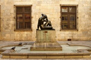 Hoewel de straten van Perpignan zelf al interessant genoeg zijn, is er binnenskamers ook genoeg moois te zien. Achter de gevel van L’Hôtel Pams in de Rue Emile Zola vergaap je je (gratis) aan de pracht en praal, de zen-binnentuin en het standbeeld dat men te sexy vond om buiten neer te zetten.